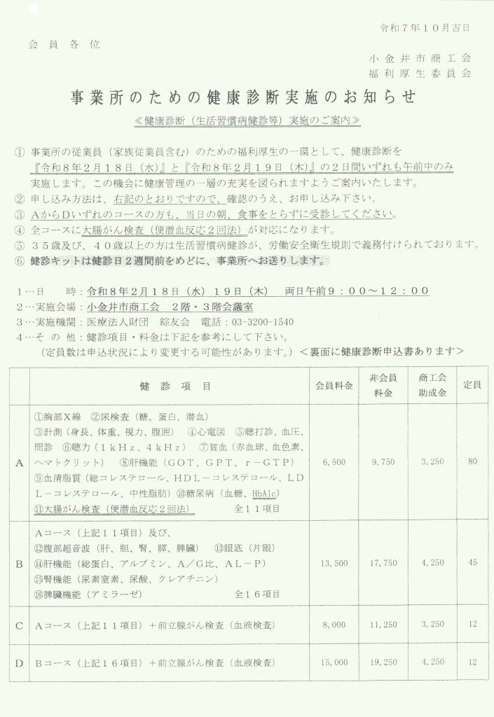 【お知らせ】事業所のための健康診断実施のお知らせ