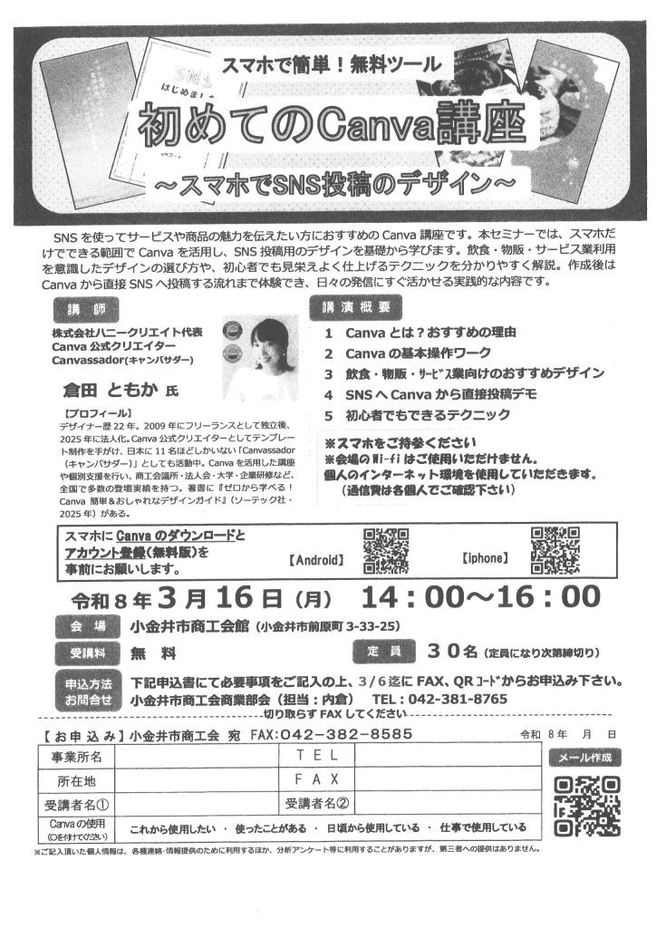 住所:東京都小金井市前原町3-33-25 TEL:042-381-8765 FAX:042-382-8585 ※JR中央線「武蔵小金井」駅南口、徒歩7分 ※小金井市消防署前