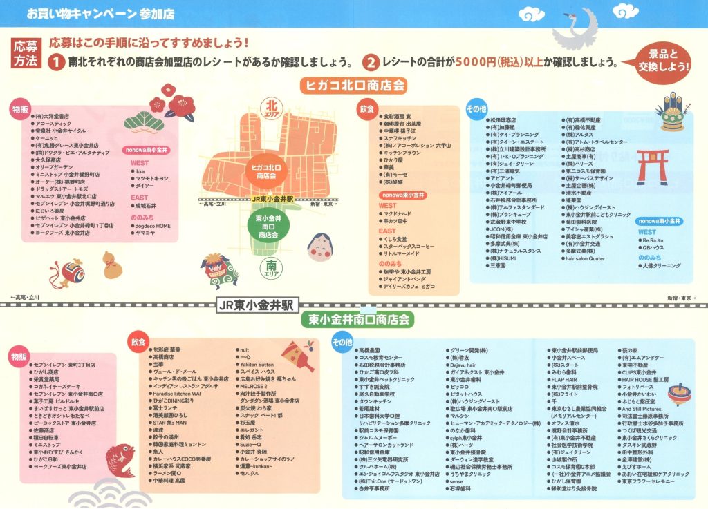 期間中、東小金井駅周辺の商店会加盟店でのお買い物で素敵な景品を