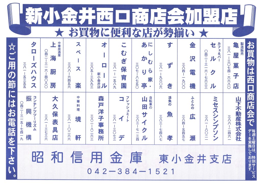 【主 催】 新小金井西口商店会